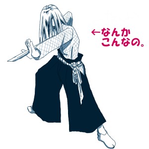 パレードで獅子舞!見たんです。久しぶりに。子どもの頃住んでいた所は田舎だったので、秋祭りの時には一軒一軒玄関の前で獅子舞してくれたのを間近で見ていたんですが、社会人になったあたりから見れなくなって久しく…。すごい懐かしかったです。ていうか、好きなんです獅子舞。獅子も好きですが、獅子と戦う男性のいでたちがものすごく好きで。顔も見えないくらいの長さの銀髪のカツラみたいなのを被って、それを振り乱して激しく立ち回るわけですよ。すごくセクシーで、このときばかりはみんなかっこよく見えたものです。あまりに懐かしかったので思わず描いてみました(笑)。テキトーですが。