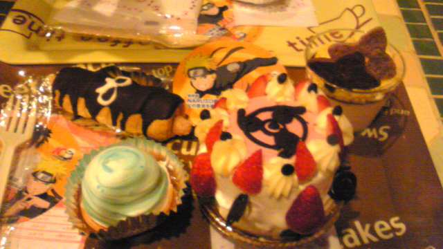 慌てて探して無事発見!そこには嬉しそうな顔で写輪眼ケーキと螺旋丸ケーキを抱えるナルサススキーが二人おりましたとさ(笑)。
