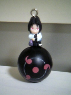 さて、本日の写真はまたまたがしゃぽんです(笑)。「りんりんすいんぐ」、今回はサスケ2回目に出た!(いつもは必ず最後。ちなみに今回の一番手はカカT…うーんカカサス)コレ、サスケが乗ってる丸い…写輪眼部が鈴になってて、最初ボールチェーンでサスケと繋がっているのですが、チェーンはずしてこうやって飾ることも出来るのです。それはいいのですが。その…上に乗っけるときにですね、写輪眼から出てる突起をサスケに挿しこむんですが…その…なんだ…アレだ…いや、位置は違うんだけど(位置言うな!)…ねえ!?(同意を求めるな;;)無駄にはぁはぁしてしまった自分に絶望ですよこんなものにまで…!!