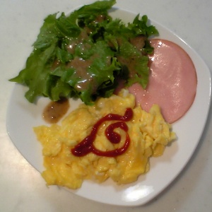 朝は時間がないと相場が決まっているので、適当にスクランブルエッグとかにしちゃうことが常なのですが、いつもケチャップで木ノ葉マーク描いてしまうワタシ。だってねぇ。つい。最初のころは家人にあからさまに嫌そうに「えー」とか言われてたのですが、もうすっかり呆れられてスルーされてます。そうそう、勝手にさせてくれ!(笑)。
