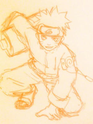 また…晩御飯準備中に…(苦笑)。こう、煮物が出来るまでのあと5分とかにぽっかり手が空くと、絵でも描くかぁ!みたいになるようです。なんだそりゃ。で、昨日はたまに全身描いてみるかなとか思って下忍ナルト。…ってやっぱ私カラダ描けない…!!(苦悶)「あれ?あれ??」とか言いつつボールペン画ですからね修正きかないんだよ…!こう、さらさらーっと素敵ポーズとかアングルとか描ける方って本当に尊敬いたします。