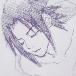 当然下絵ナシの一発描きにつき歪んでるのはデフォルトです(てか下絵描いても歪むだろ自分)。しかも超迷いながら描きましたし?「まつげまつげ下まつげ~♪やっぱサスケかなー。あ、でもまつげといえばイタチ兄さんか、兄さんにするか、でもなー。あれ?この顔サソリにしてもいい?うーん髪型調べるのメンドクサイな(おい)あ、やっぱサスケで!初志貫徹!」←絵を描いてるオイラの正しい脳内独白再生。はい、バカでごめんなさい。でも楽しいんだぁ!