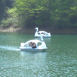 今日は森林公園なるところに行ってきました。こういうボートに乗れたり動物園があったりバーベキュー場があったり公園があったりするところで、なかなかに楽しいところです。で、乗ってきましたスワンボート。正しくはヘリコプター型の足こぎボートだったのですが。乗り込むときに係りのおじさんに「あそこの浮きは超えないで下さいね。あと、浮きの下にはロープがあるから、近づきすぎるとスクリューがロープ巻き込んで大変なことになるから」と注意を受けました。大丈夫!堅実派だから無茶しないって!と自信満々に乗り込んだのですが、今日は異常に風が強く…流される流される…!!!気がついたときには例の浮きがボートのすぐ横に!!(泣笑)離れたいのに漕いでも漕いでも動きゃしないよ!ひぃぃー!!と内心大騒ぎでした。なんとかロープは巻き込まずに済みましたが、予想外にスリリングなクルーズになりました。