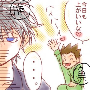ゴンにとってジャンケンの結果はもうあんまり意味がないみたいです。わがまま言ってもキルアが折れてくれると確信してますから。付け上がってますねー。でもあんまり調子に乗ってると…!?